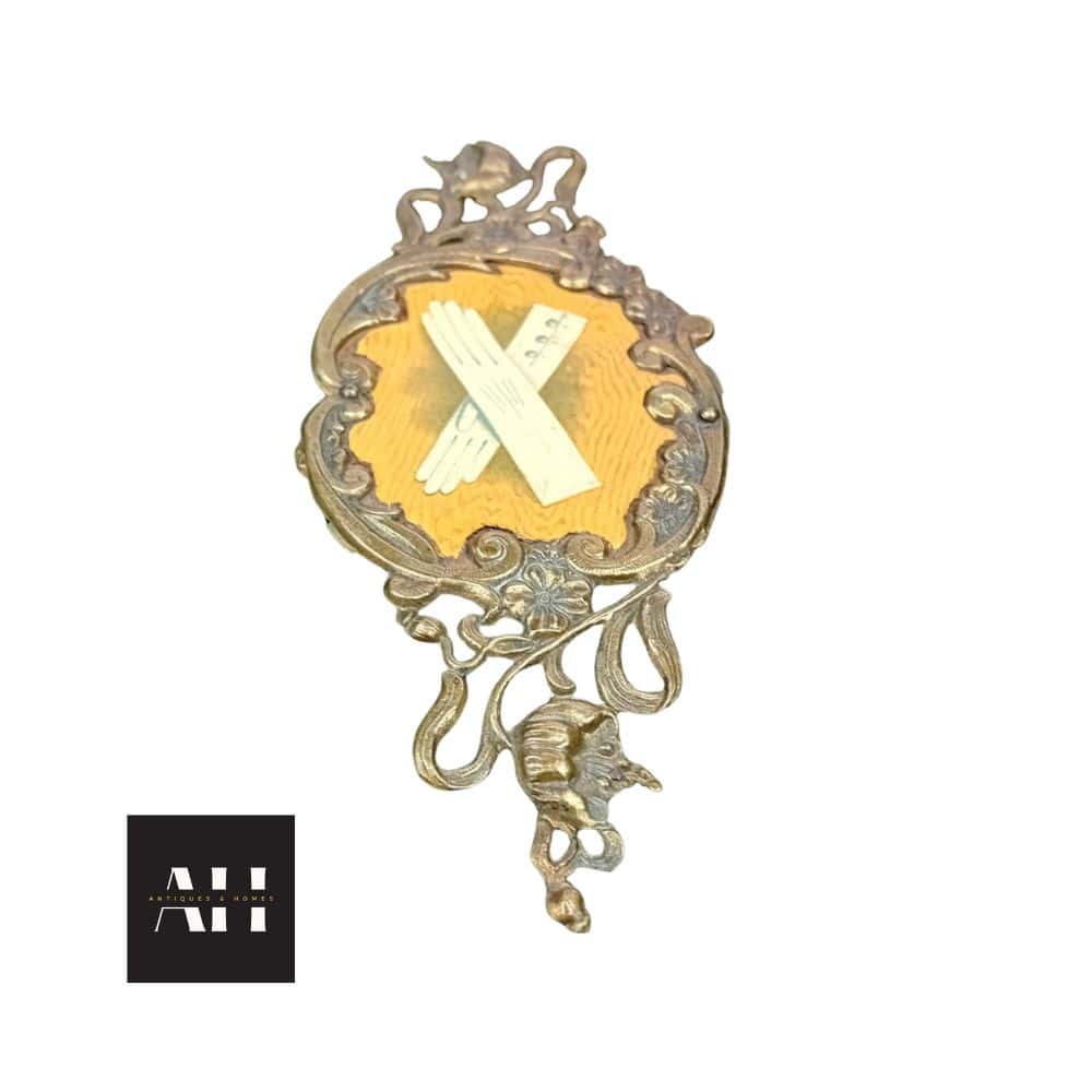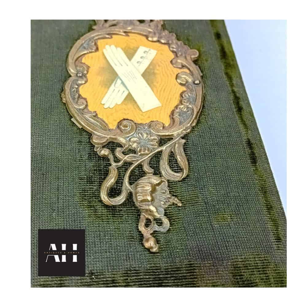 The box grabs attention as well. It shows a dark green velvet exterior wrapped around sturdy card layers, with a red interior lining that still holds strong colour. On the lid, a metal fretwork cartouche frames a picture of antique gloves, creating a decorative detail that stands out. In addition, the contrast between the dark exterior and the vivid interior makes the design even more striking.