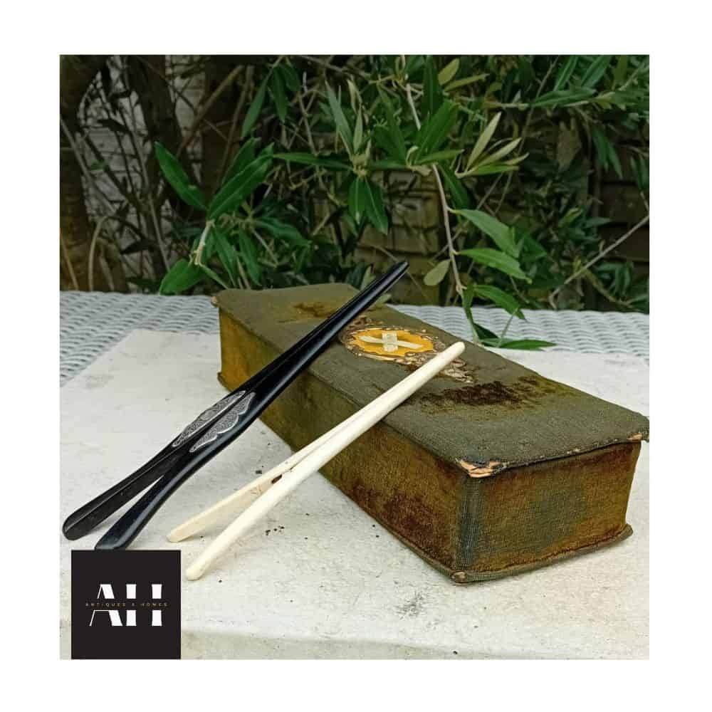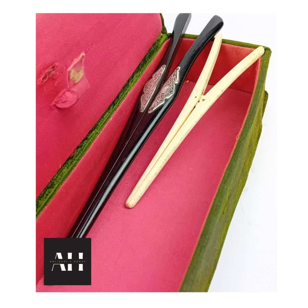 Ebony Pair – crafted in possible ebony, detailed with a solid silver hinge plate that adds refinement.