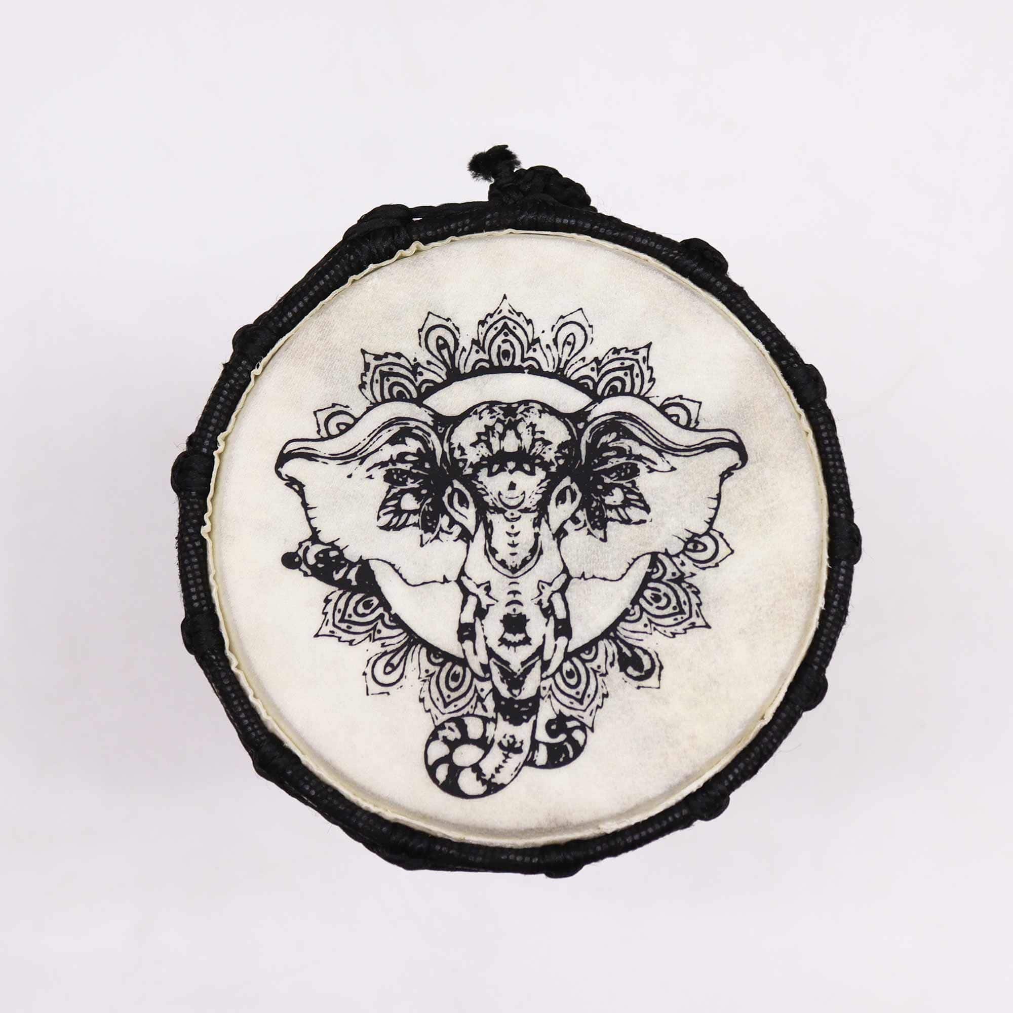 The drumhead is decorated with a hand-painted elephant design, adding both cultural depth and visual appeal. Elephants are widely recognised as symbols of strength, wisdom, and resilience across many African traditions.