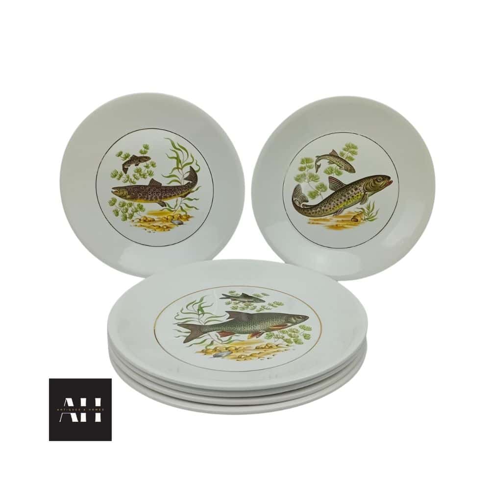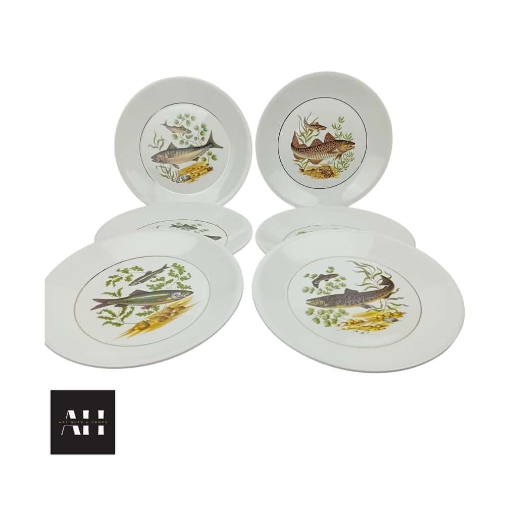 A complete set of six mid-century Scandinavian Fish Plates from the 1960s, combining quality craftsmanship with mid-century Scandinavian elegance. The fish motif and gold-edged finish make them a charming addition to any vintage or modern dining setting.