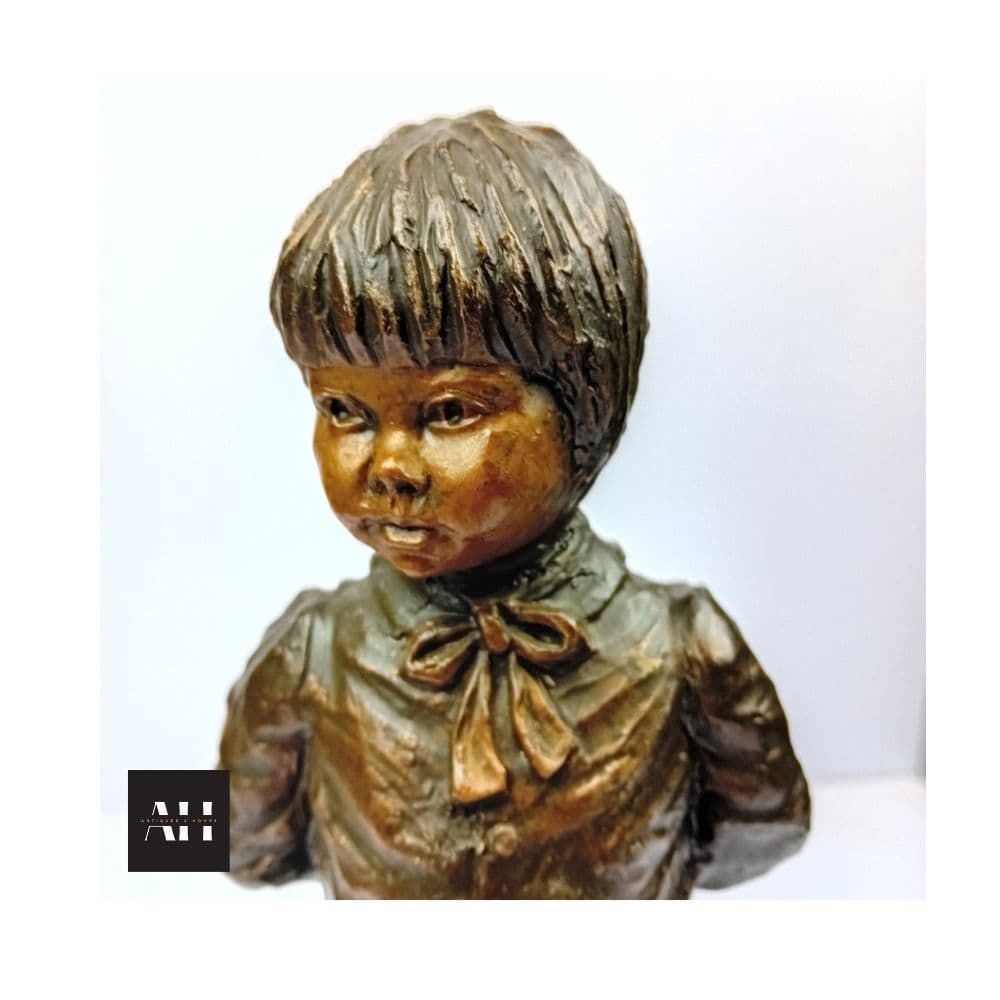 This handcrafted Geert Kunen Sculpture of a boy reflects the artist’s unique skill in merging realism and feeling. The bronze-like finish, fine detailing, and true Dutch craftsmanship make it an exceptional vintage collectable figurine.