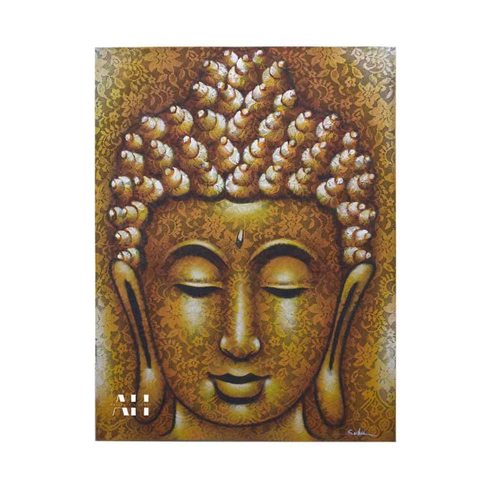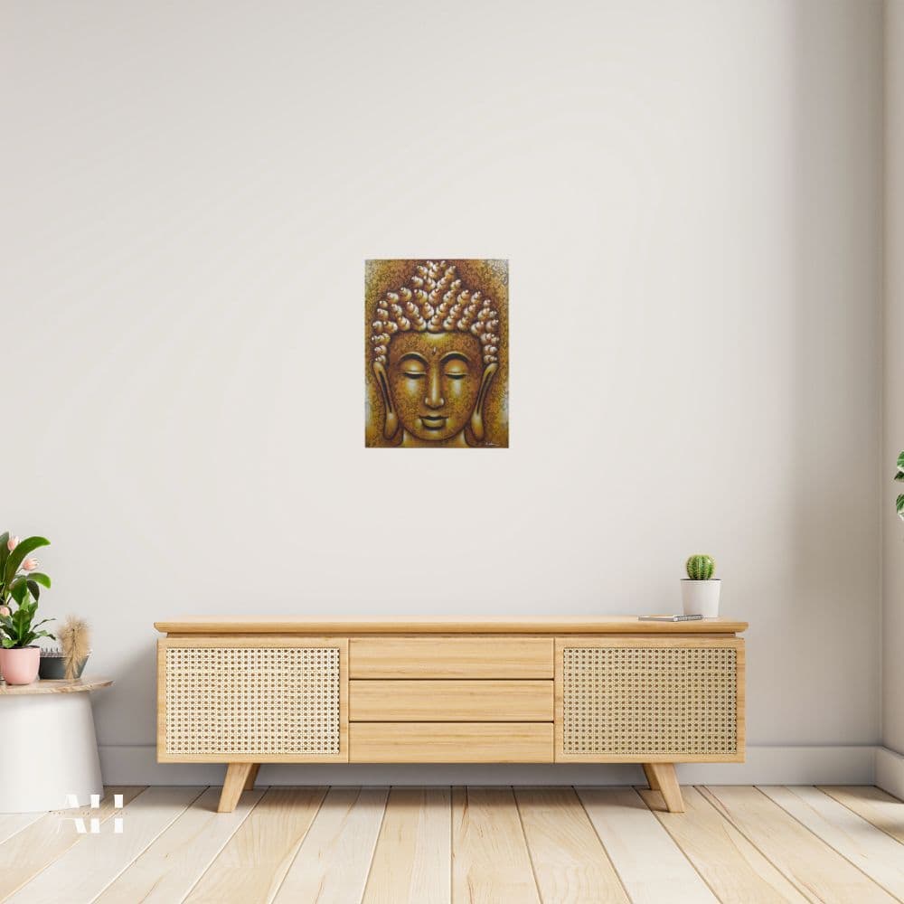 The golden tones and fine details create a serene atmosphere. Part of our ever growing wall art collection. Display it in your living room, bedroom, or retreat. This Gold Buddha painting also makes a thoughtful and cultural gift for loved ones.