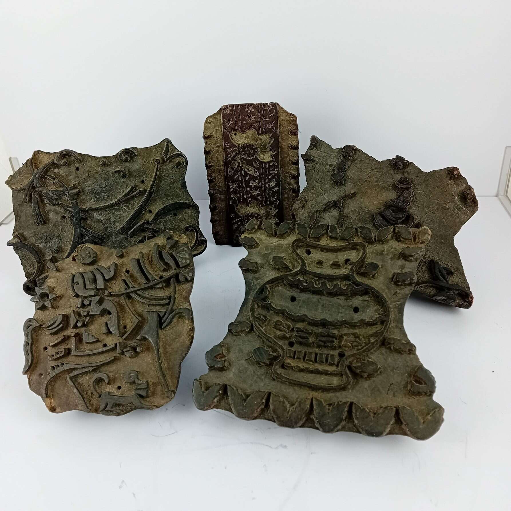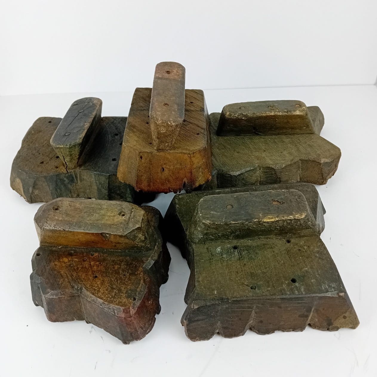 Add a touch of traditional craftsmanship to your creative projects with this beautiful Indian Textile Printing Block set. These 5 blocks were hand-carved from wood in India to print intricate designs onto fabrics and paper products. Their rich history and stunning patterns make them as much decorative items as they are functional tools. They were made in the early part of the 20th century. These blocks were also used in other cultures, but all clues lead to these being of Indian origin.