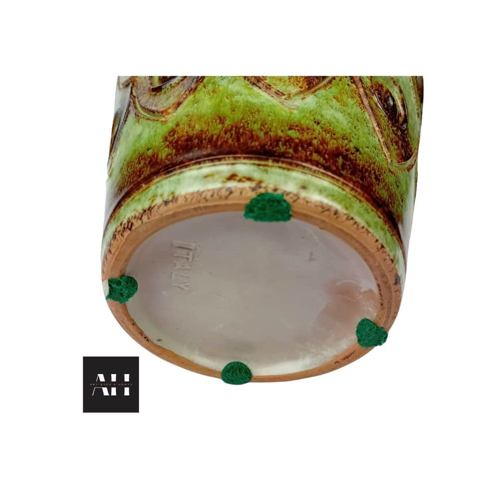 The base carries the impressed word Italy, and the original Jaffe Rose label remains intact. Both details confirm its origin and add to its collectable appeal. For more background, you can explore the tradition of Italian pottery and its influence on European exports.