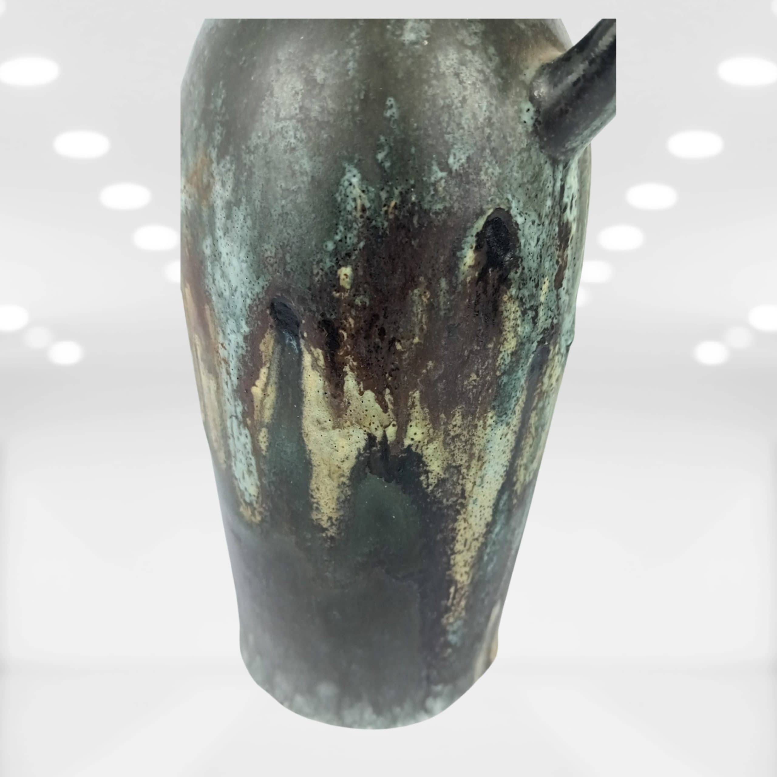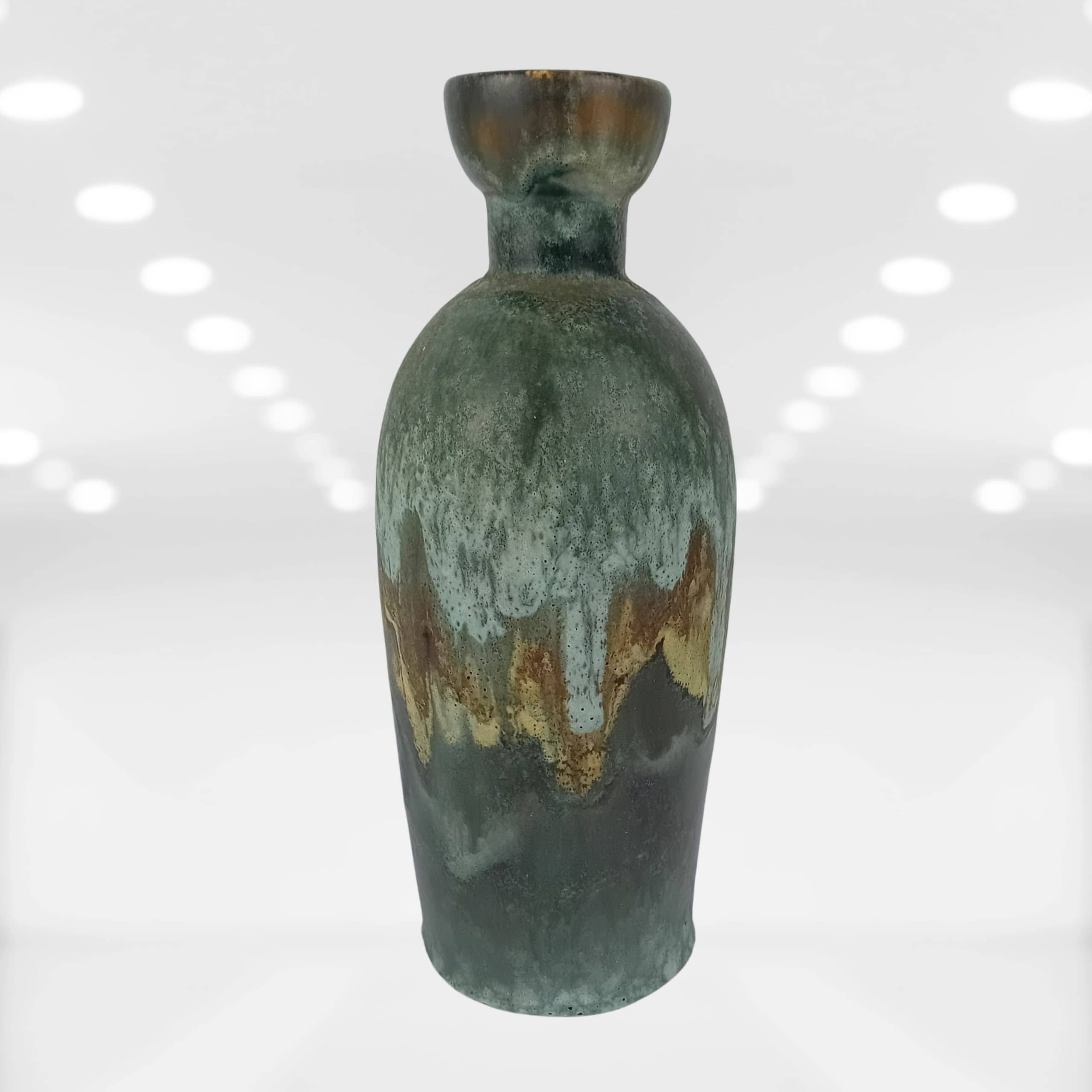 Every angle of this vase reveals a natural, organic finish. The drip glaze runs down the rounded body in layers of earthen colour, giving the impression of a misty forest after rain. Not only is it practical for displaying dried or fresh stems, but it’s also striking enough to stand alone on a shelf or sideboard.
