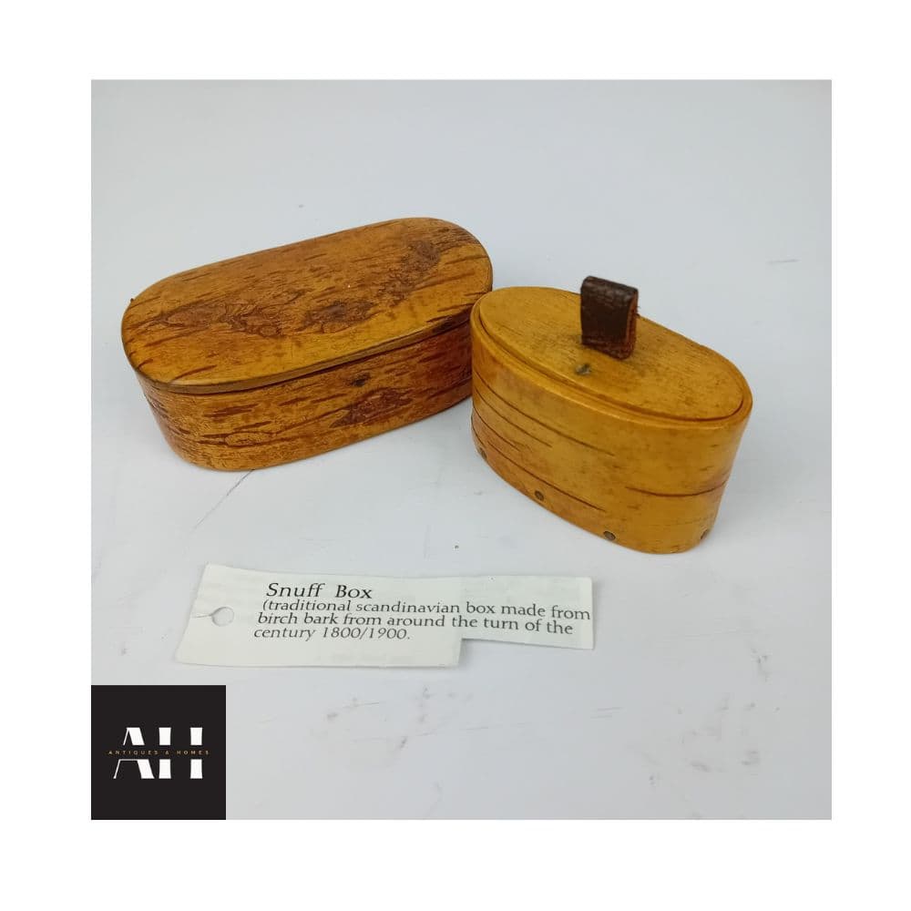 Birch bark was widely used across Scandinavia for centuries, not only for snuff boxes but for practical household containers and other Treen objects. You can read more about these traditions at the Nordic Museum – Birch Bark Traditions.