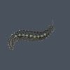 Add timeless elegance to your outfit with this striking Silver and Pearl Fern Brooch in a marcasite style. Measuring approximately 7.5cm in length, this brooch is marked “silver” and is likely from the 1950s. While its design resembles a fern, its graceful shape could just as easily represent a feather, adding to its unique charm and versatility.