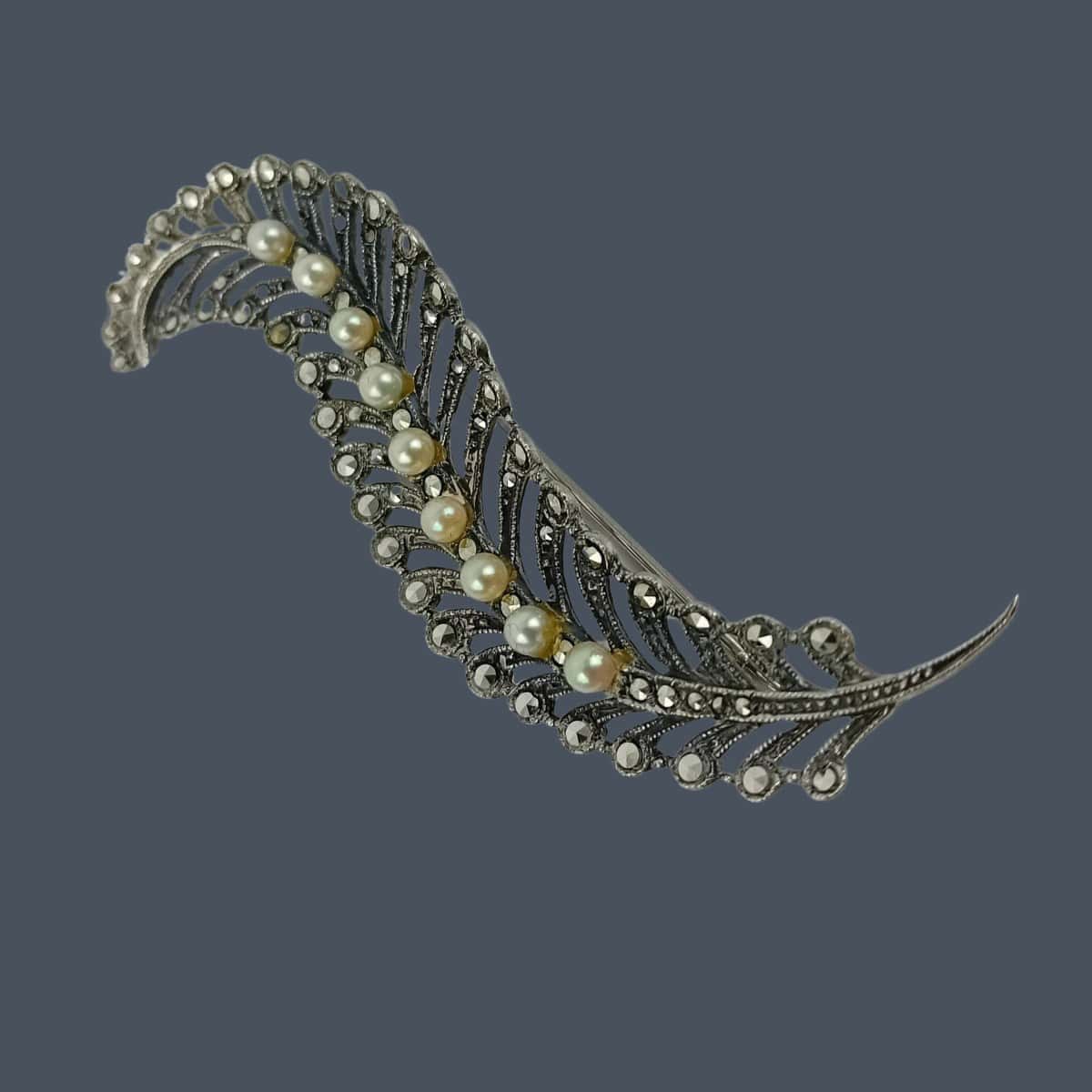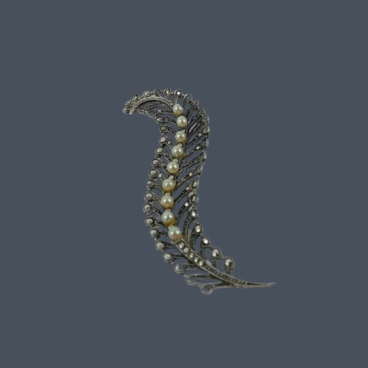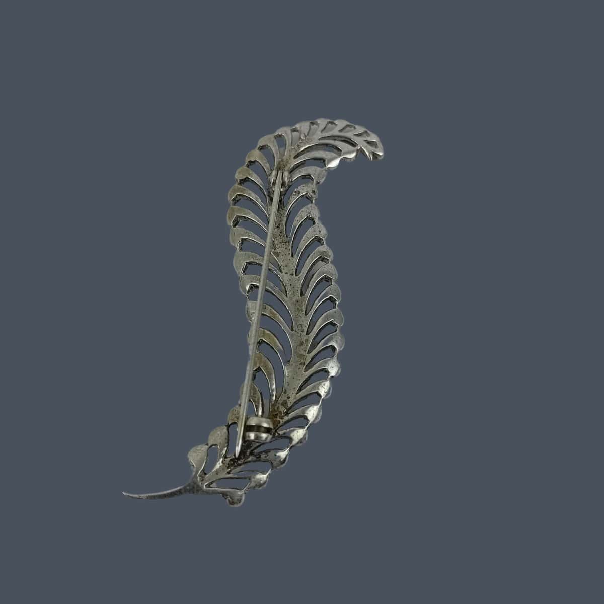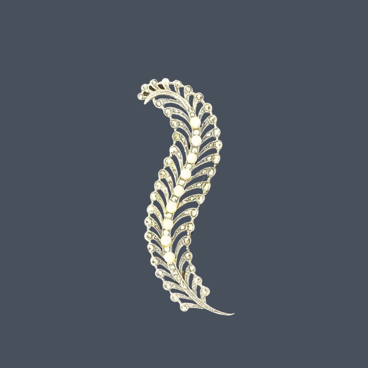 Silver and Pearl Fern Brooch – Marcasite Style, 1950s