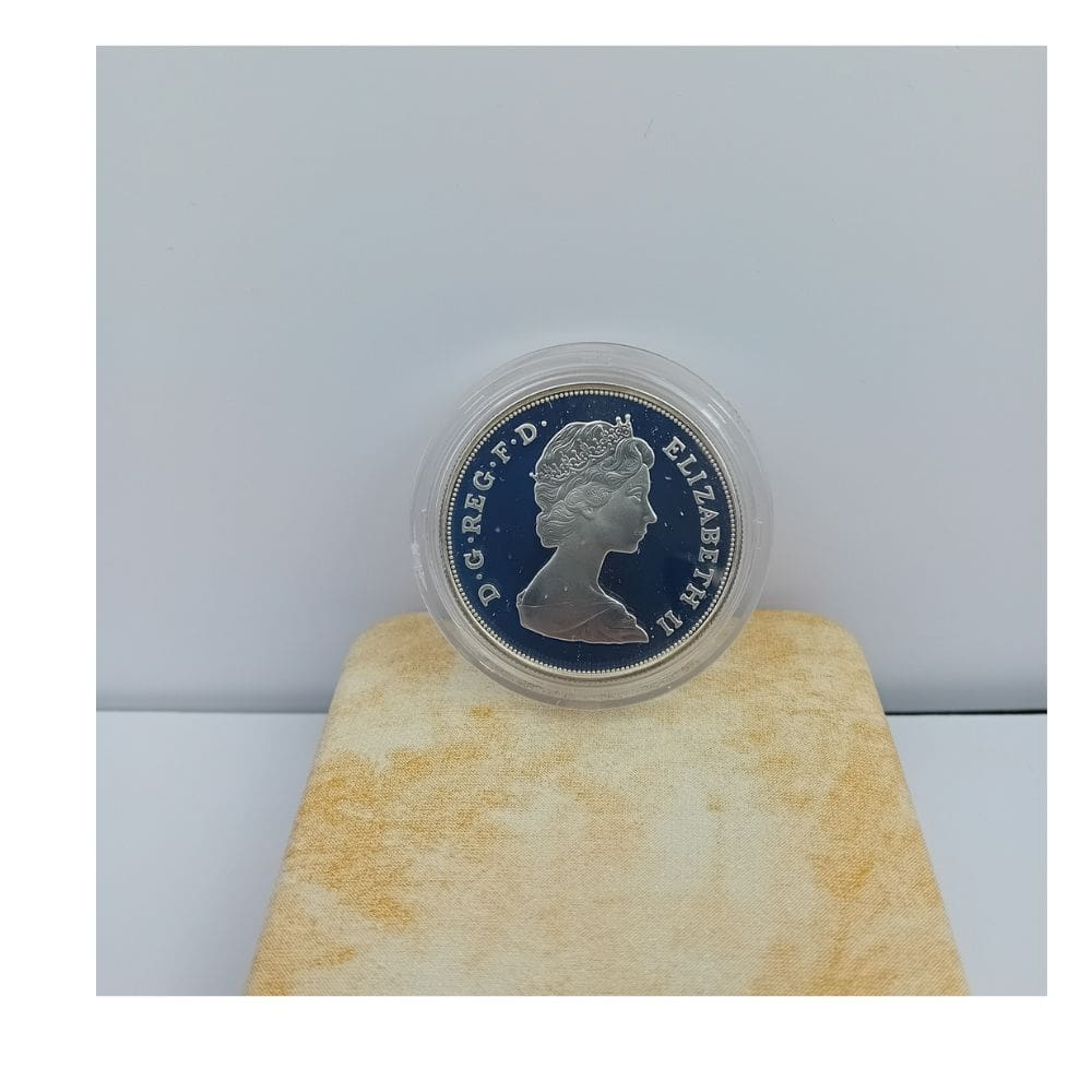 This elegant Silver Proof Crown 1980 was issued by the Royal Mint to commemorate the 80th birthday of Her Majesty Queen Elizabeth the Queen Mother. Struck in fine sterling silver, the coin features a detailed portrait of the Queen Mother designed by Arnold Machin, surrounded by a laurel wreath symbolising honour, longevity, and celebration.