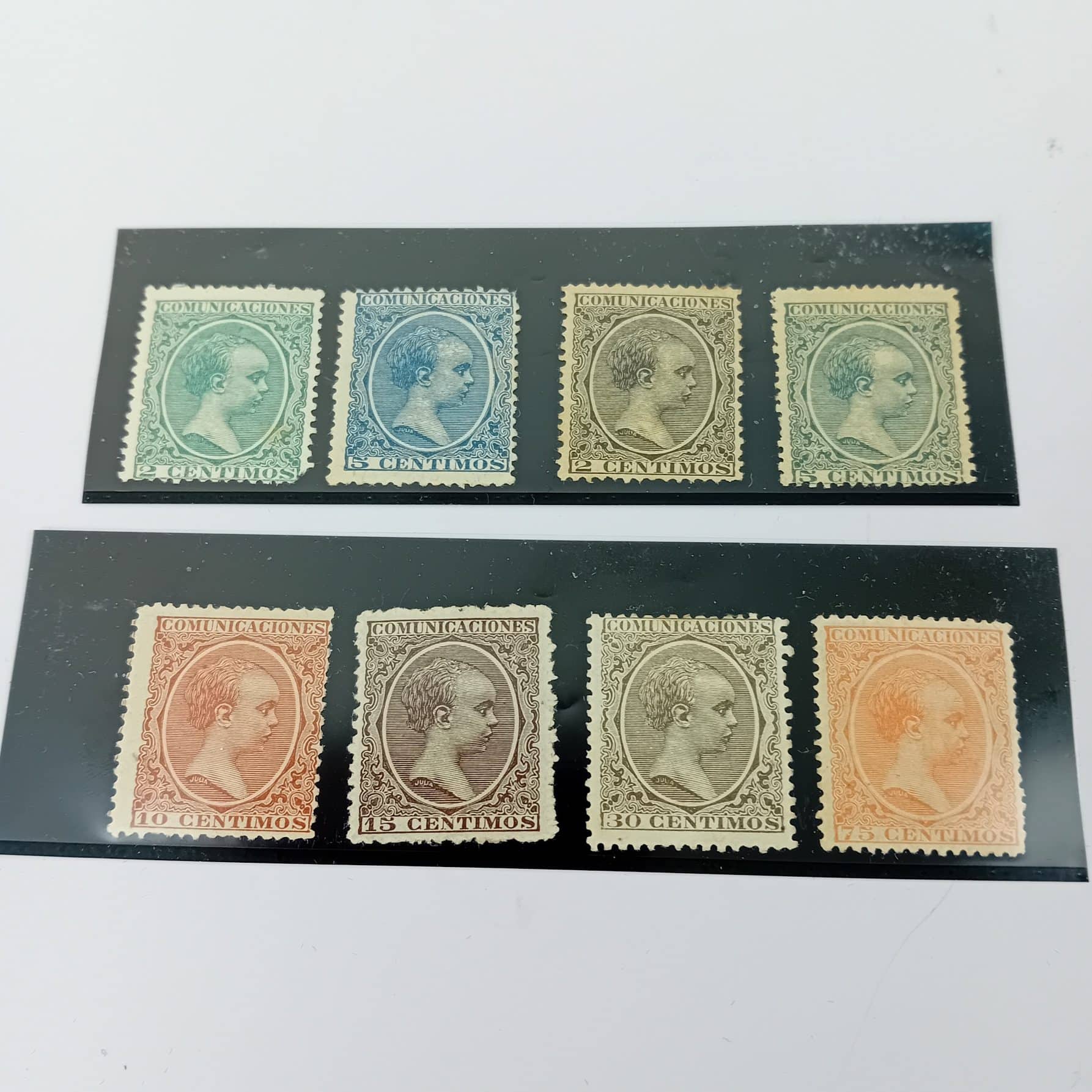 In good overall mint/unused hinged condition No rips or tears. The 2c Green has a short corner perf and there are signs and remnants of hinging on reverse as per images. The 75c stamp which has the highest catalogue value has bright colours and well centred with 4 clear margins, which is what makes this stamp special.