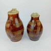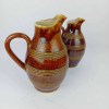 Add a touch of rustic elegance to your home with these early 20th-century French stoneware wine jugs. Crafted in classic farmhouse style, these wine jugs or pitchers were traditionally used for dispensing wine or cider and feature a charming beaded design that adds subtle texture and authenticity. Their earthy tones and sturdy stoneware construction make them both decorative and practical, ideal for adding a warm, vintage touch to your kitchen or dining area. This pair of rustic jugs are perfect for farmhouse decor enthusiasts or anyone who appreciates timeless, functional pottery with a hint of European charm. Although unmarked apart from numbers, it is most likely they are of French origin from the Late 19thc/Early 20thc