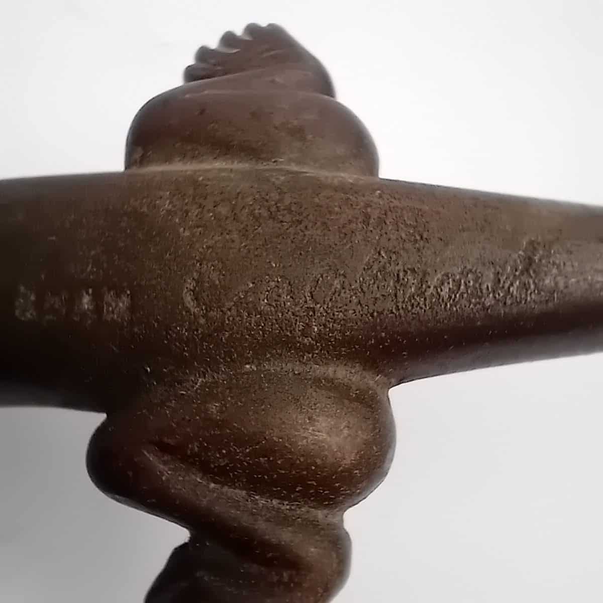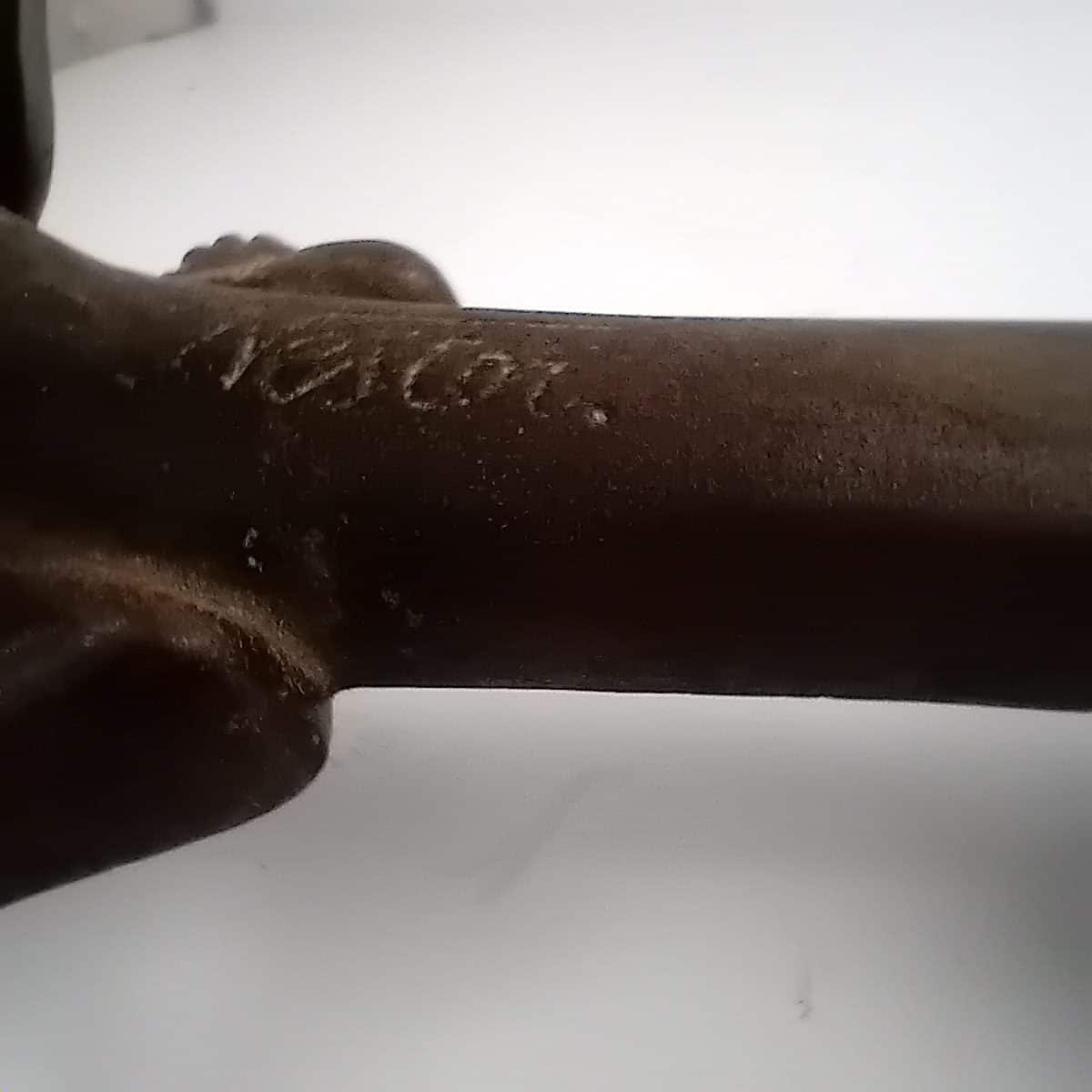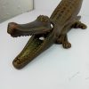 Add charm and functionality to your collection with this unique Cast Iron vintage alligator nutcracker (or crocodile!), signed by Nestor, England and has the original registration number also stamped on the top body section. Dating back to the first half of the 20th century, this distinctive piece combines novelty appeal with practicality, making it an ideal choice for holiday gatherings and festive displays.