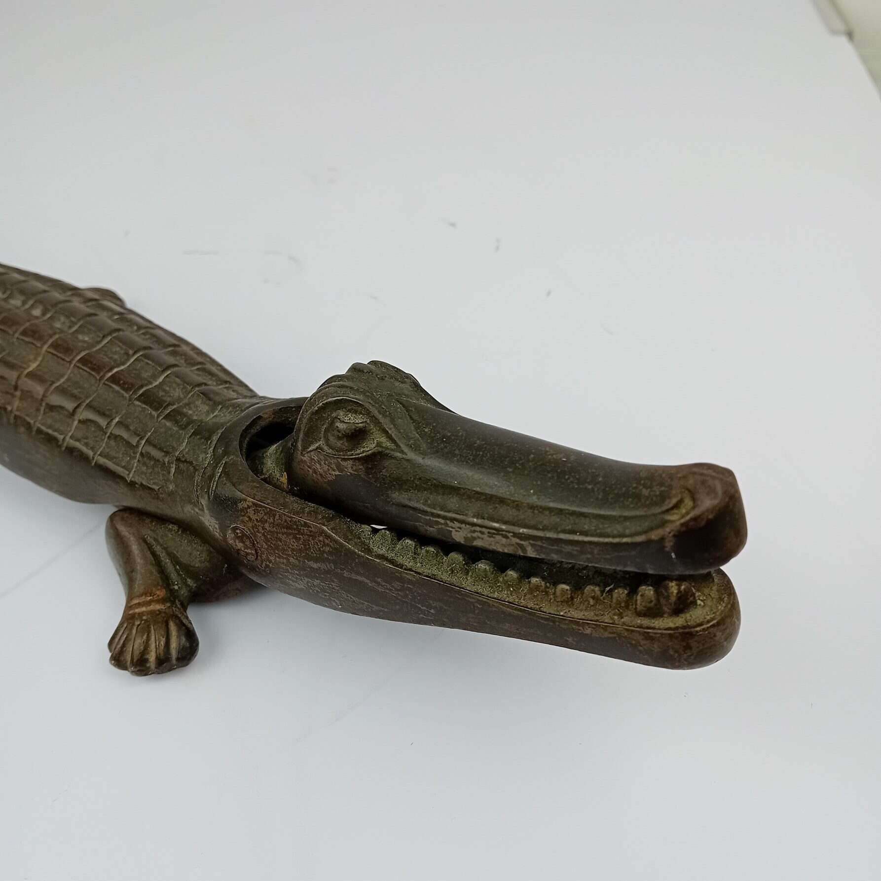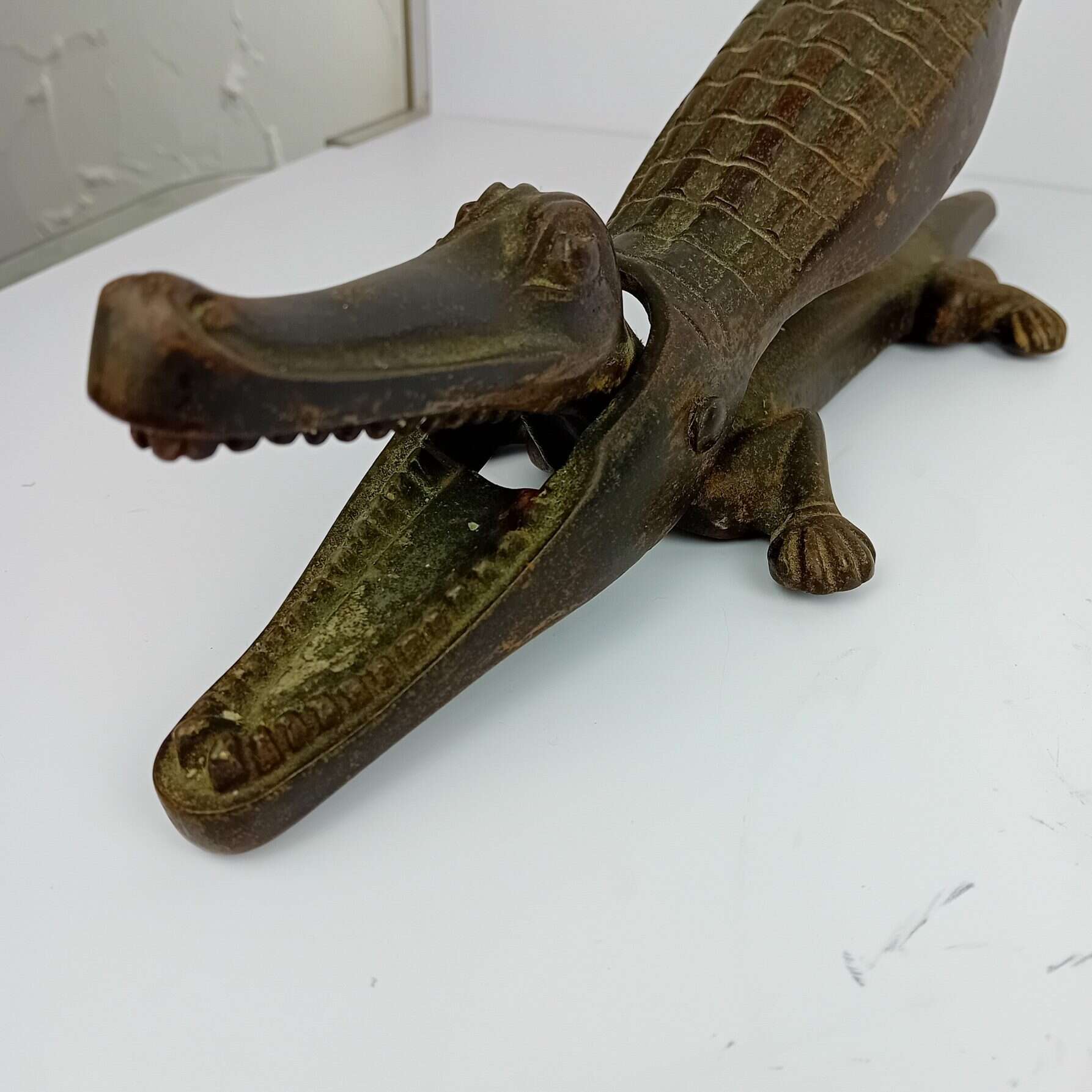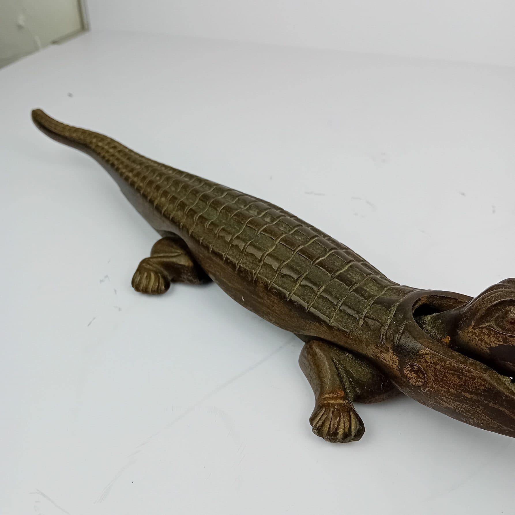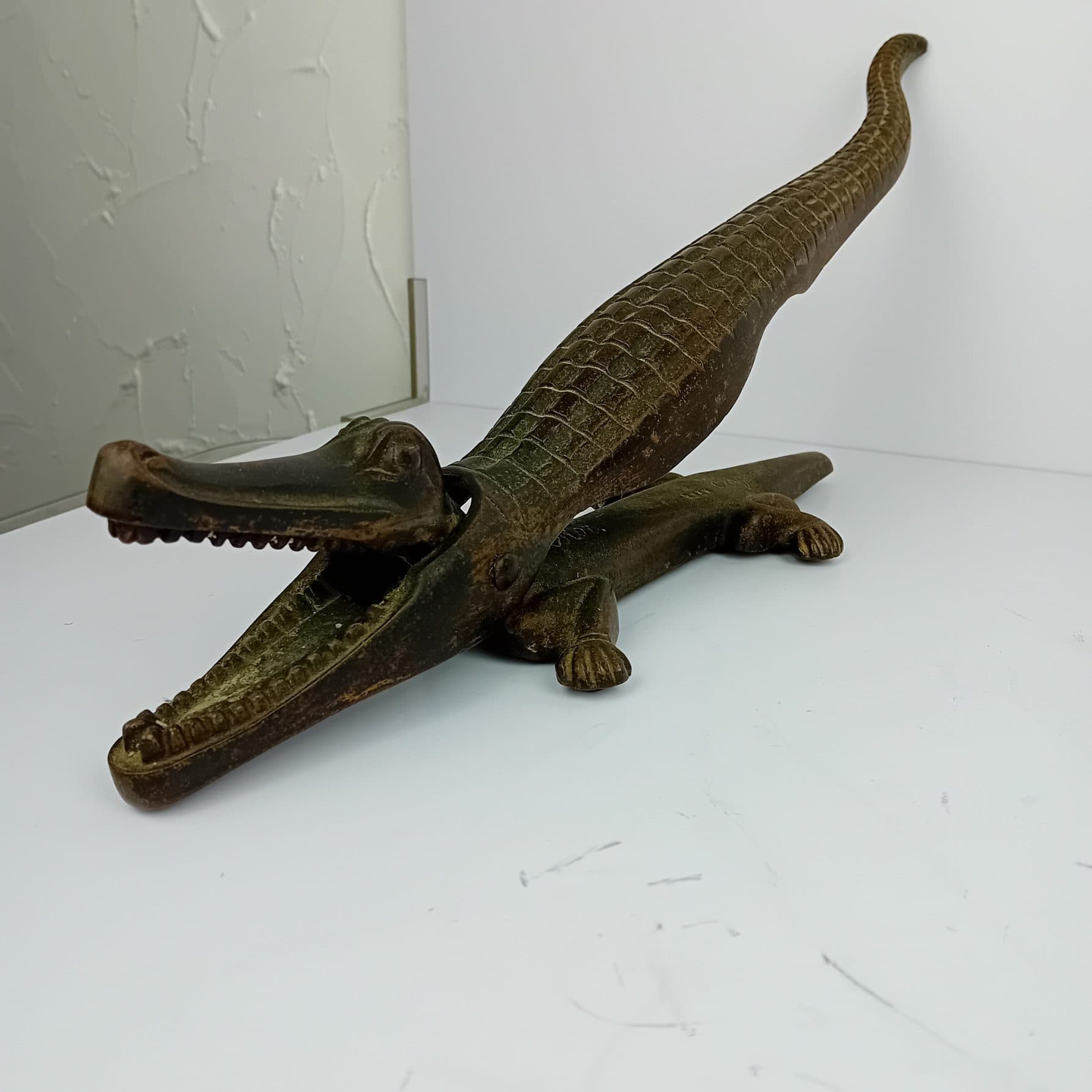 One of the larger versions made,The Alligator Nutcracker measures an impressive 40cm in length. This nutcracker has a sturdy grip and ample leverage for cracking nuts. Its rustic, vintage look brings character to any setting, whether displayed as a collectable or used as a practical tool. A fantastic, rare find that’s both decorative and useful!